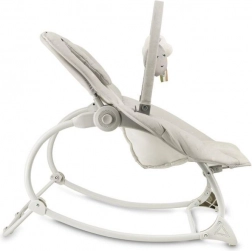 Stabilní konstrukce, 3bodový pás a možnost aretace houpání zvyšují bezpečnost. Hrazdička se dvěma měkkými hračkami rozvíjí smysly a zabaví miminko.