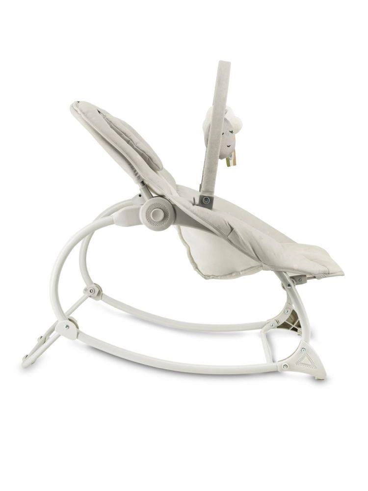 Lehátko MoMi LAPIS kombinuje manuální houpání s komfortním, měkce polstrovaným sedátkem a zábavou v podobě melodií a jemných vibrací. Díky 3stupňovému nastavení opěradla snadno přizpůsobíte polohu od relaxace po pozorování okolí, zatímco odnímatelný polštářek podpírá hlavičku nejmenších.
