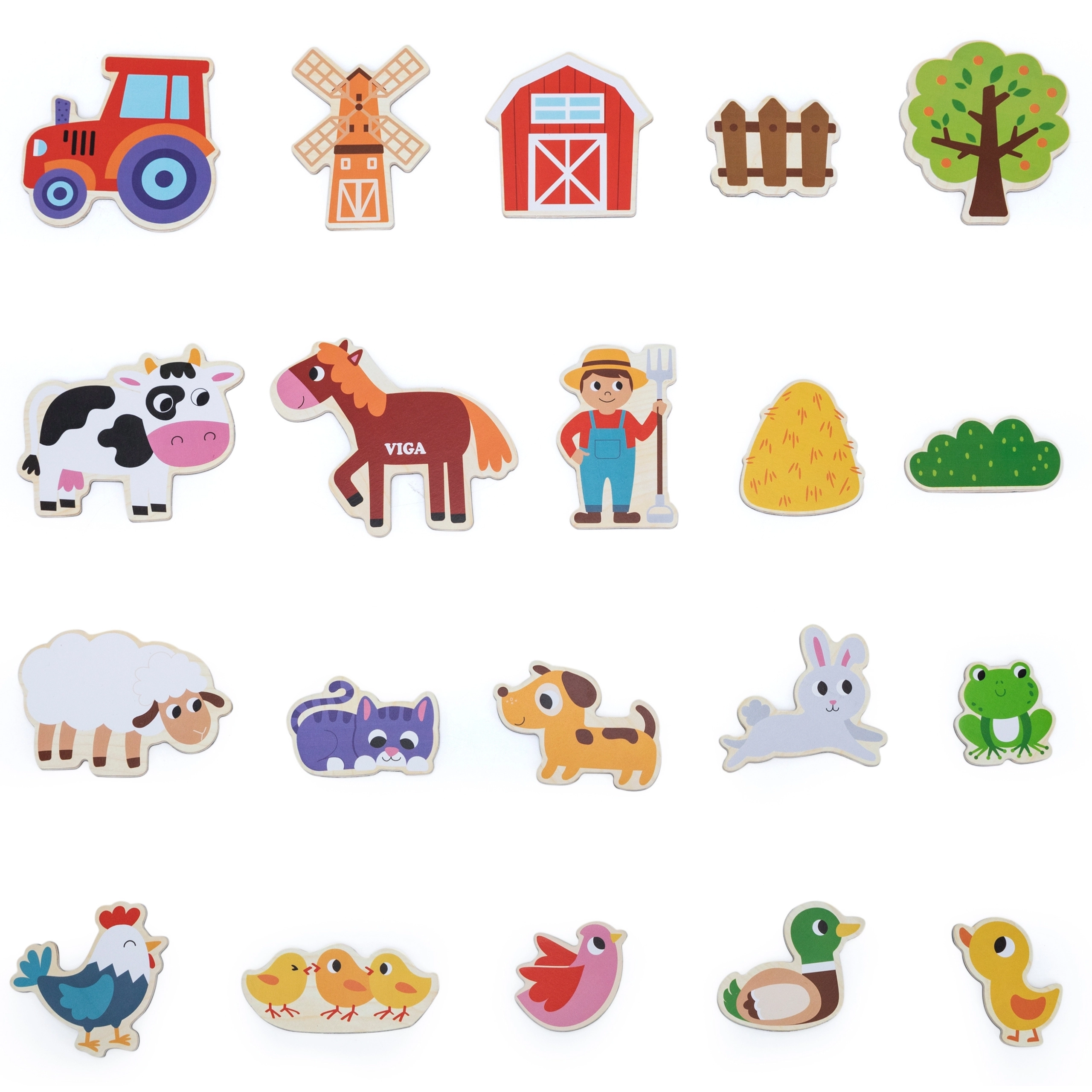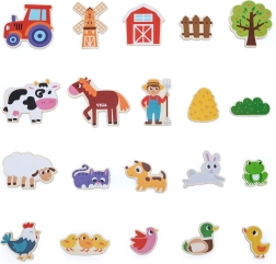 Objevte kouzlo venkova s dřevěnými magnety VIGA. Tato sada 20 barevných magnetů se zvířaty z farmy je ideální na lednici, magnetickou tabuli i speciální podložky. Děti mohou tvořit scény, vyprávět příběhy a přirozeně se učit poznávat hospodářská zvířata – vše ve formě bezpečné a zábavné hry.