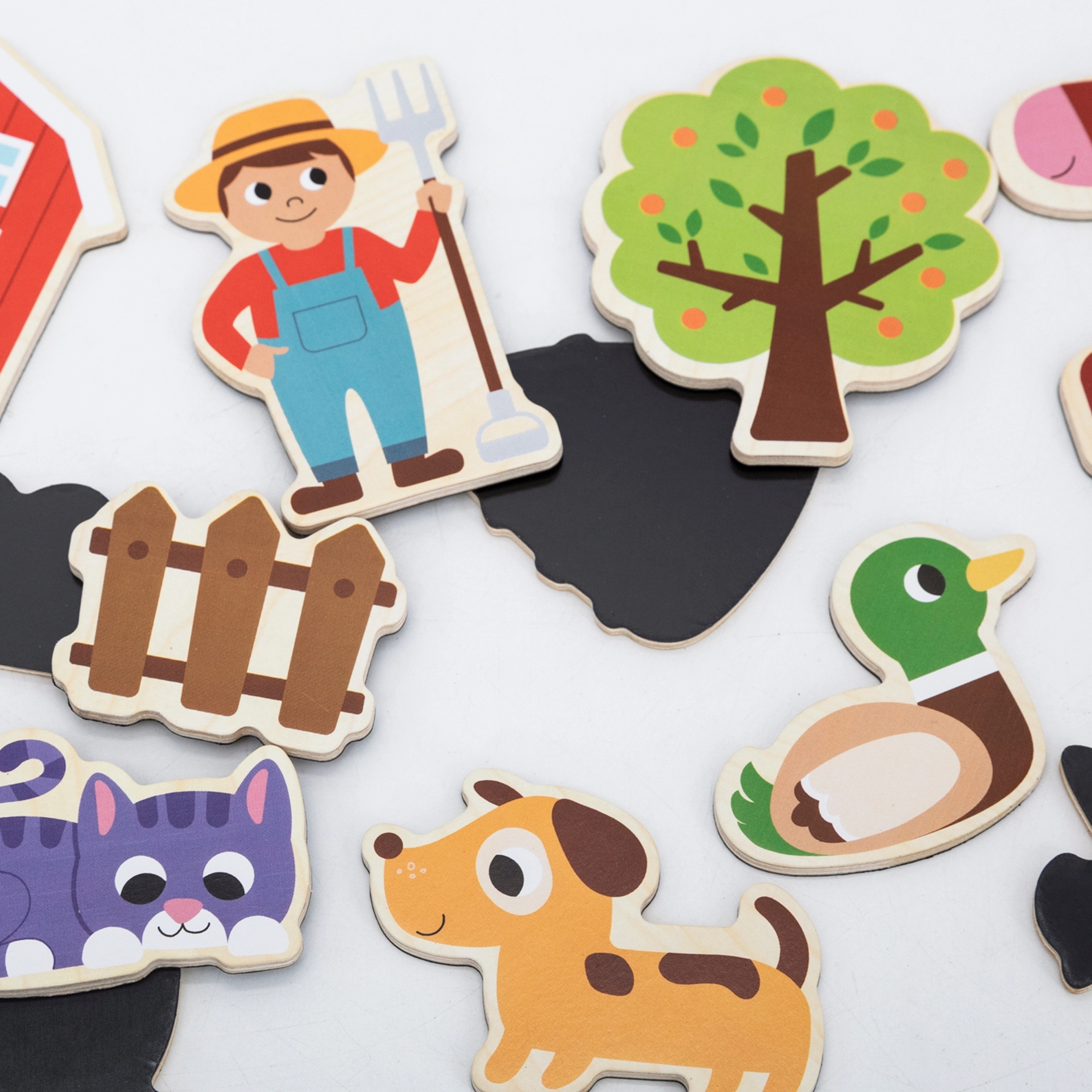 - 20 dílků se zvířaty z farmy pro tvorbu vlastních scén a příběhů.
