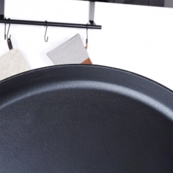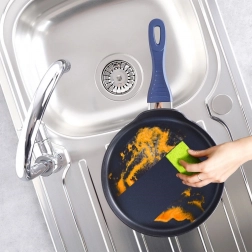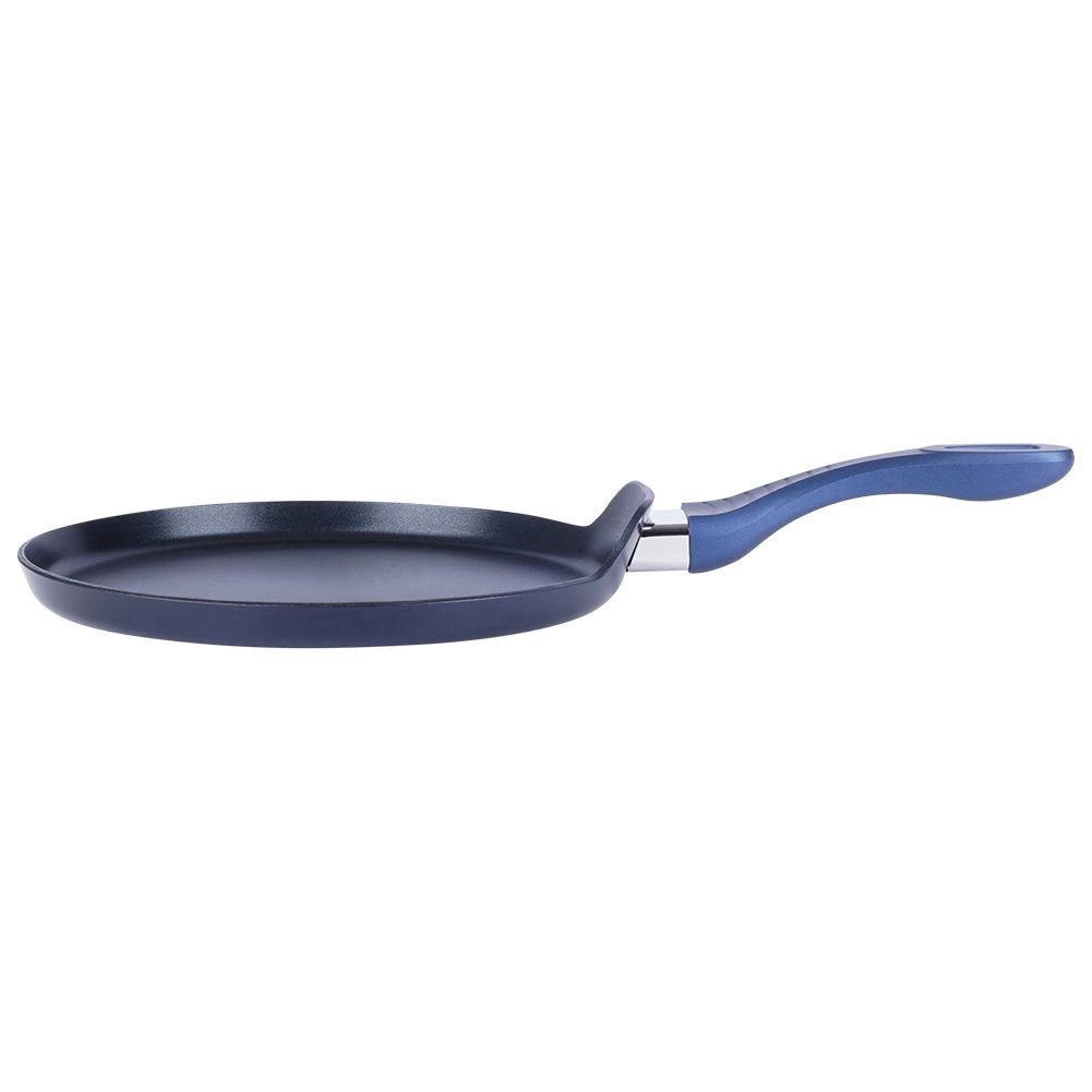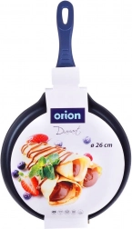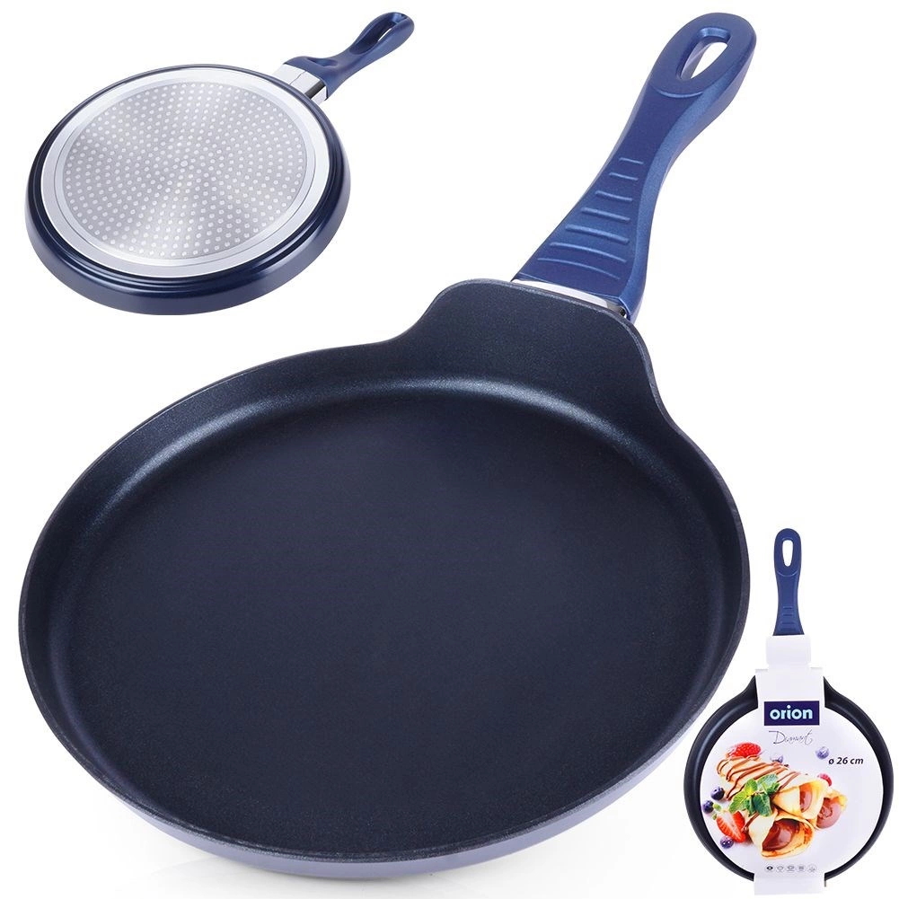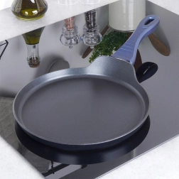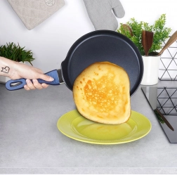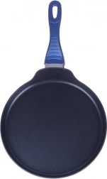 Rukojeť s měkkým silikonovým povrchem zůstává chladná a pohodlně se drží. Nízký okraj usnadňuje nalévání těsta, nadzvedávání i otáčení palačinek. Pánev je bez PFOA a PTFE, odolná vůči čisticím prostředkům a díky indukčnímu dnu je kompatibilní se všemi typy varných desek.