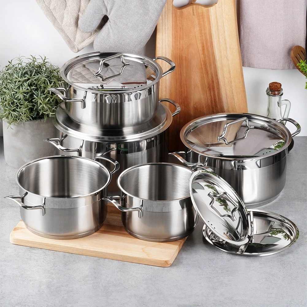 Vysoce kvalitní nerezová ocel 304 zaručuje dlouhou životnost, hygienu a jednoduché čištění – hrnce jsou vhodné do myčky.