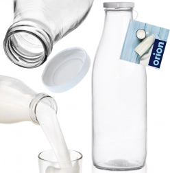 Praktická skleněná láhev o objemu 1 litr s kovovým šroubovacím víčkem pro bezpečné uchování a servírování nápojů. Díky průhlednému sklu, odolnému provedení a spolehlivému uzávěru je ideální na mléko, šťávy, limonády i koktejly. Vhodná do lednice, snadno se čistí a udrží nápoje déle čerstvé.