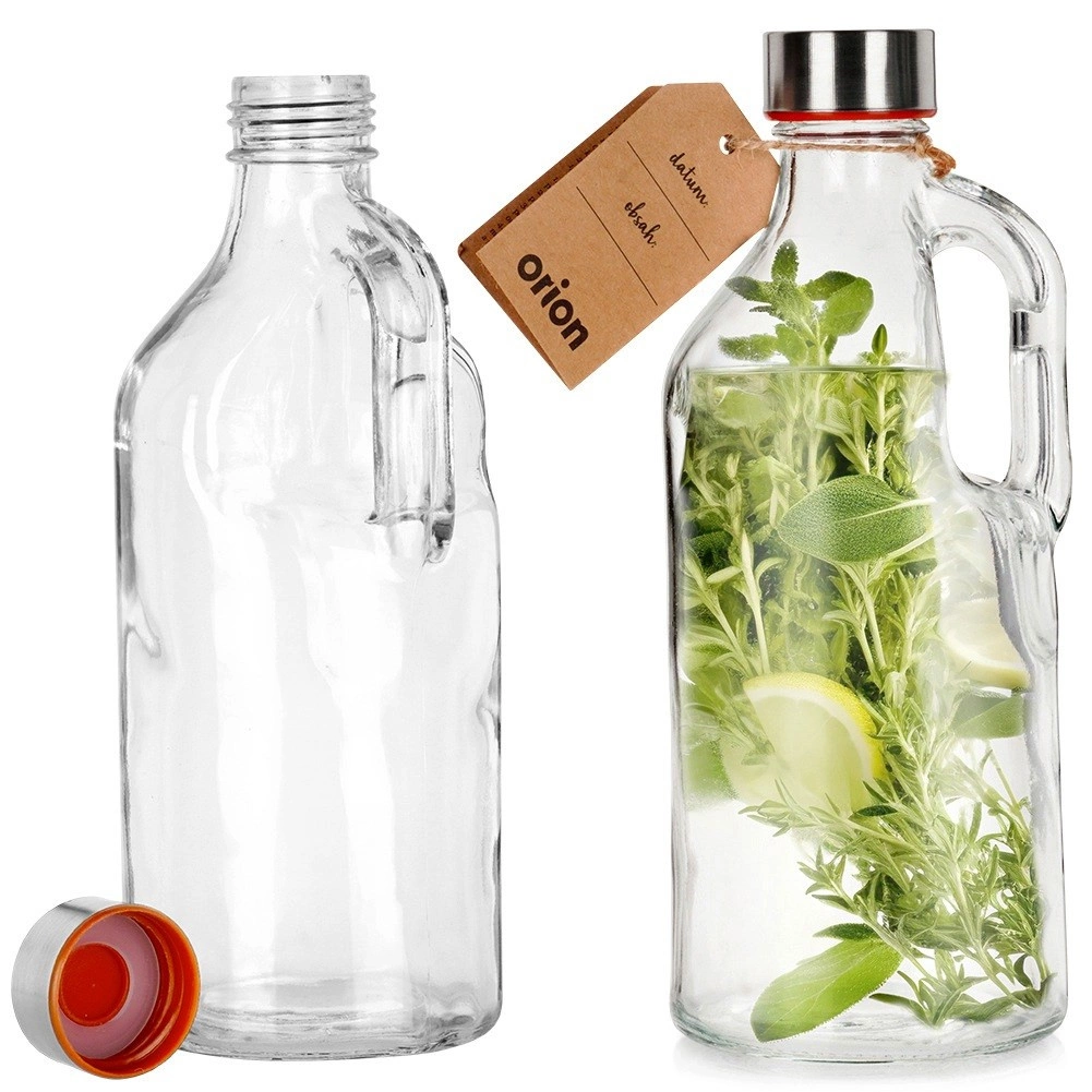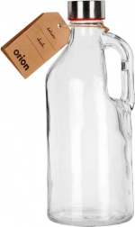 Tato skleněná láhev s uchem je perfektní volbou pro vodu, šťávy, limonády, smoothie i domácí sirupy či likéry. Průhledné sklo umožňuje kontrolu obsahu, kovové víčko se silikonovým těsněním spolehlivě zabrání protékání a uchová nápoje déle čerstvé. Díky uchu se láhev skvěle drží a snadno se s ní nalévá.