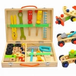 Tento univerzální set podporuje jemnou motoriku, fantazii a technické myšlení dětí. Díky pevnému dřevěnému provedení a lehkému kufříku si mohou malí stavitelé vzít své nářadí kamkoli a kdykoli začít tvořit.
