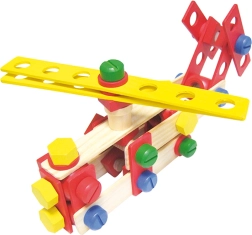 Barevné i přírodní slatě, šrouby, matice, kola a spojky umožní dětem skládat vozidla i fantazijní konstrukce a stále znovu je přestavovat.