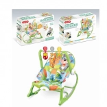 Toto zelené dětské lehátko s vibrační funkcí je navrženo pro klidné houpání a relaxaci vašeho miminka. Integrovaná hrající veverka přináší jemné zvukové podněty, které dítě zabaví i uklidní. Díky kompaktním rozměrům se lehátko snadno vejde do menších prostor a je ideální i na cesty.