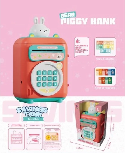 Dopřejte dětem zábavný způsob, jak si šetřit peníze. Tato pokladnička ve stylu sejfu s motivem roztomilého králíčka je vyrobena z vysoce kvalitního plastu, takže je lehká, odolná a bezpečná pro každodenní používání. Díky kompaktním rozměrům se vejde na poličku i psací stůl a stane se veselou dekorací dětského pokoje.