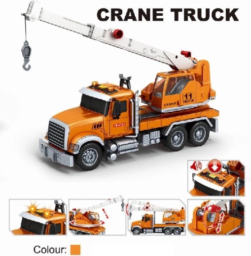 Toto detailně zpracované auto s jeřábem je skvělou volbou pro děti, které milují stavební stroje a realistickou hru. Díky setrvačníkovému pohonu se vozidlo snadno rozjede pouhým postrčením a teleskopický výsuv s otočným jeřábem umožňuje zvedat a přesouvat náklad pomocí háku.