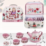 Stylová kovová čajová sada v praktickém kufříku potěší malé hostitelky i hostitele. Obsahuje vše potřebné pro hraní na čajový dýchánek – filižanky, talířky, podšálky, konvičku a tác. Díky odolnému kovovému provedení a přenosnému kufříku je sada ideální na doma i na cesty.