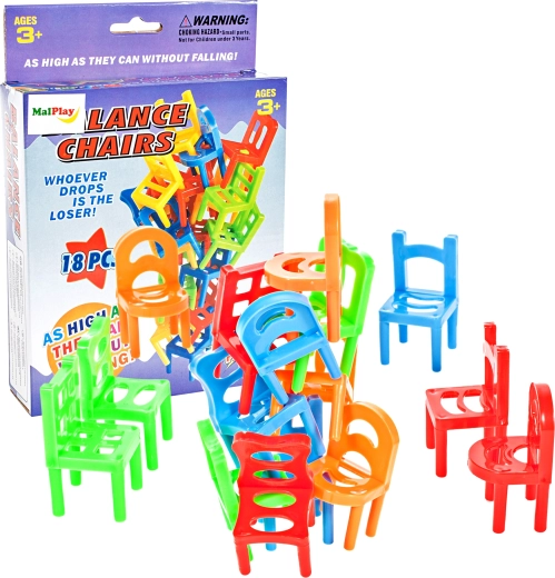 Zábavná rodinná hra s 18 židličkami ve 3 barvách, ve které vyhrává ten, kdo se jako první zbaví všech svých dílků. Jednoduchá pravidla, rychlá kola a napínavé stavění a skládání zaručí spoustu smíchu. Ideální na cesty díky kompaktním rozměrům balení a snadnému uchopení pro děti.