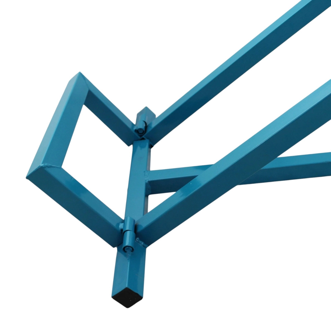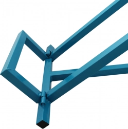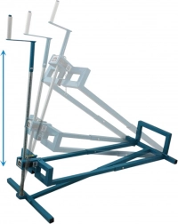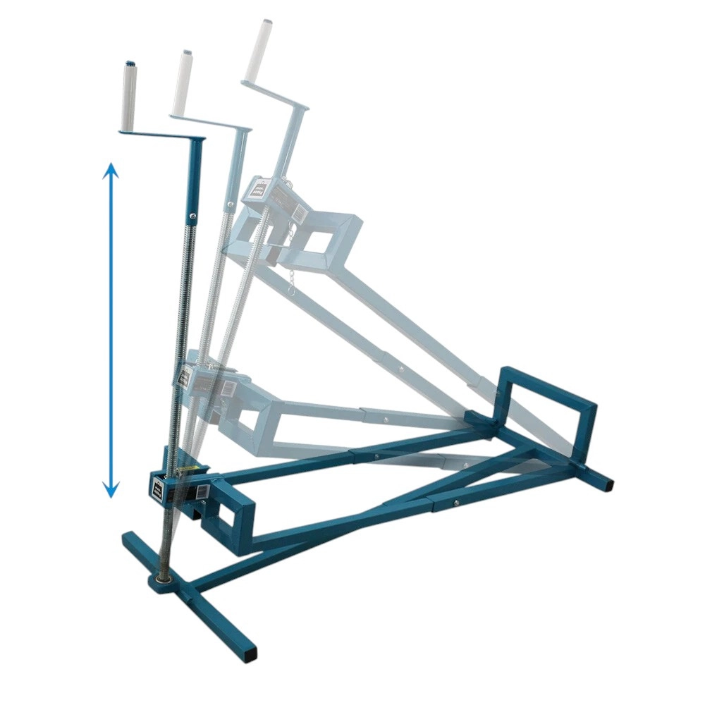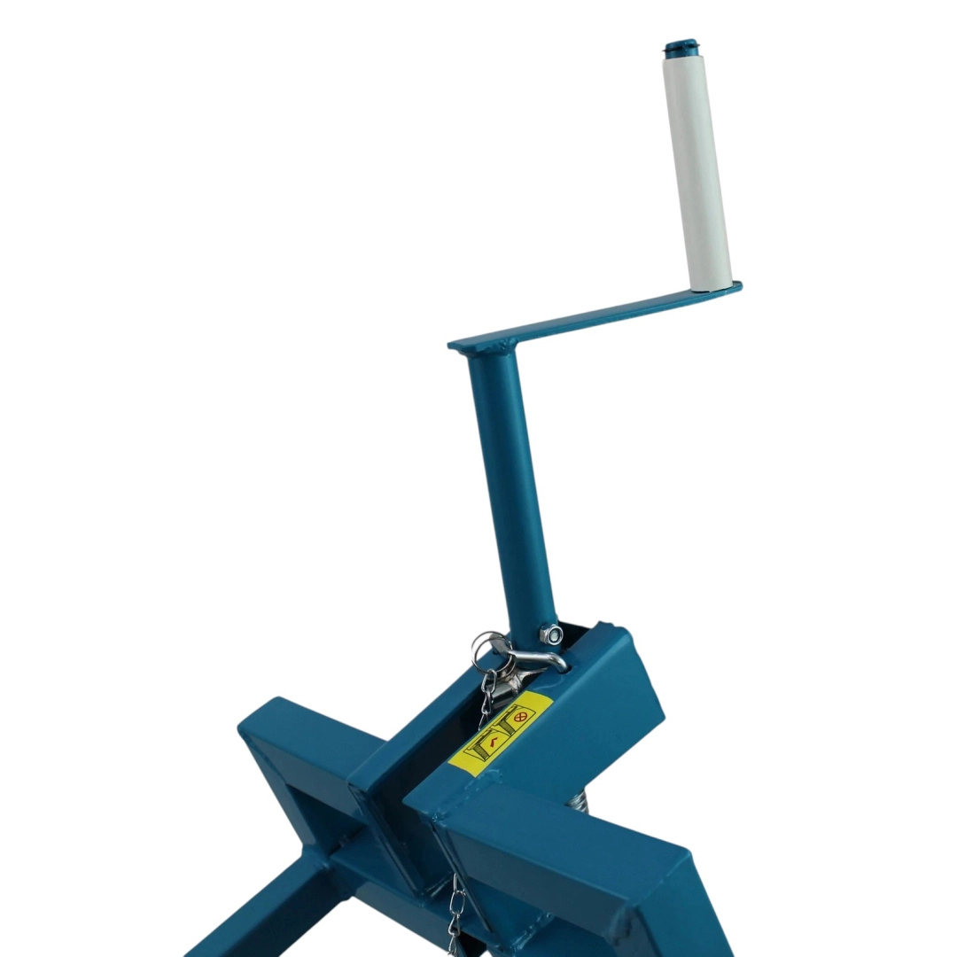 Díky ocelové svařované konstrukci a promyšlené geometrii rámu je zvedák stabilní a zároveň snadno přenosný (cca 7 kg). Nastavitelný zdvih až 650 mm a úhel 40° zajišťují pohodlný přístup k žacímu ústrojí i podvozku většiny zahradních traktůrků a sekaček.