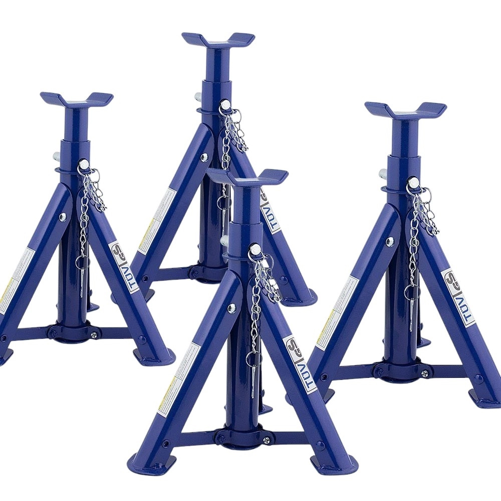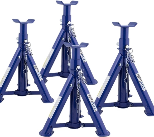 Sada obsahuje 4 kusy, takže snadno a bezpečně podepřete celé vozidlo. Certifikace TÜV potvrzuje splnění evropských bezpečnostních standardů, což z ní dělá spolehlivou volbu pro profesionální i hobby použití.