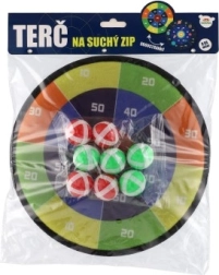 Hra obsahuje 8 míčků se suchým zipem, které bezpečně přilnou k terči, čímž se minimalizuje potřeba dohledu nad bezpečností. Terč je vybaven očkem pro snadné zavěšení v místnosti.