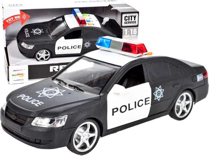 Vstupte do světa policejních zásahů s detailně zpracovaným modelem policejního auta v měřítku 1:16. Hra je díky několika realistickým zvukovým efektům ještě zábavnější – od klaksonu, přes sirénu, až po zvuk zamykání a couvání. Ideální pro domácí hraní i jako doplněk do sbírky.