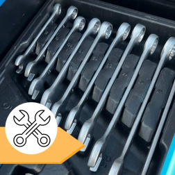 Víceúrovňový rozkládací kufr s vložkami udržuje všechny díly přehledně na svém místě. Rychle najdete správnou hlavici, klíč i šroubovák.