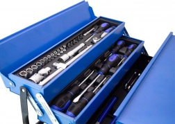 Tato univerzální sada nářadí nabídne vše, co potřebujete pro montáže, opravy i běžnou údržbu. Díky promyšlenému rozložení v několika patrech kufru máte každý kus okamžitě po ruce, bez chaosu a zbytečného hledání. Robustní kovová konstrukce kufru zajistí bezpečné přenášení i dlouhou životnost.