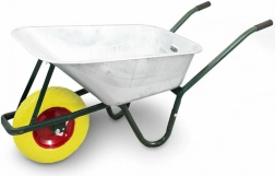 Robustní stavební kolečko s pozinkovanou korbou o objemu 100 l a nosností 250 kg pro stavbu, zahradu i hospodářství. Nabízí odolnou ocelovou konstrukci, plné PU kolo odolné proti propíchnutí a dlouhé ergonomické rukojeti pro pohodlné ovládání.
