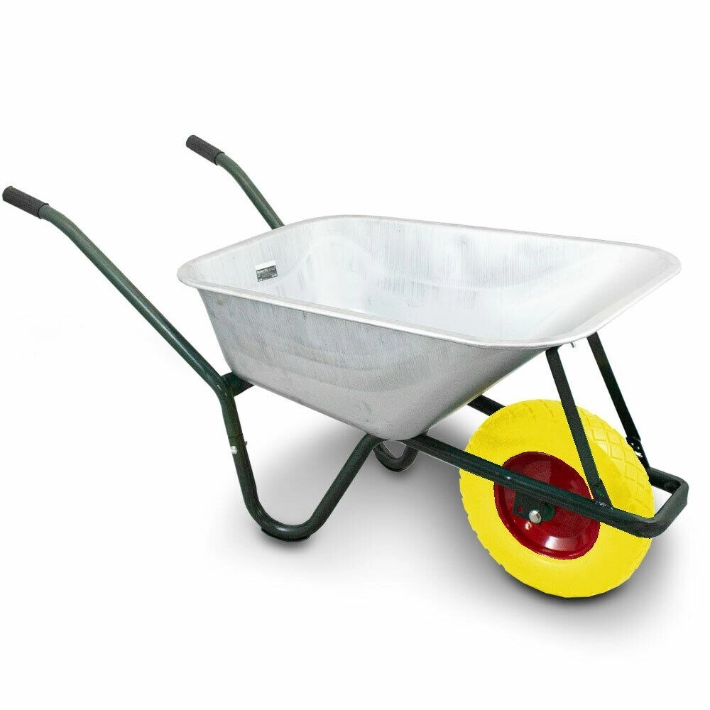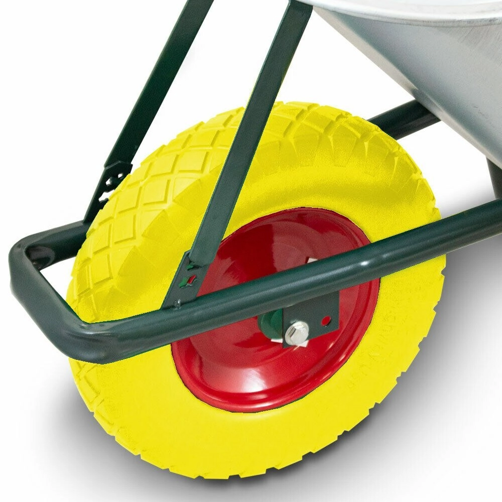 Univerzální stavební kolečko je navržené pro každodenní práci na stavbě, na zahradě i v zemědělství. Pozinkovaná korba z oceli o tloušťce 0,5 mm zajišťuje vysokou odolnost proti korozi a dlouhou životnost, zatímco pevný lakovaný rám unese i těžké náklady až 250 kg.