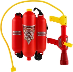 Tato funkční hasičská vodní pistole s plastovým zásobníkem na záda promění každé odpoledne v napínavou záchrannou akci. Stačí naplnit zásobník vodou, přišroubovat hadici a nastavit sílu proudu – a hasení fiktivních požárů může začít. Ideální pro hru na zahradě, na hřišti i u vody.