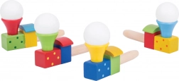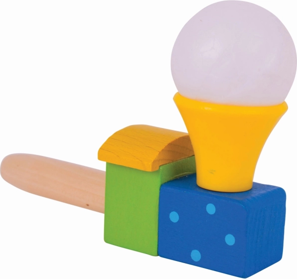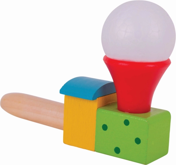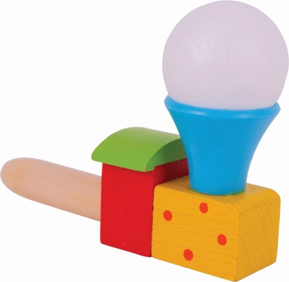 Tato barevná dřevěná lokomotiva s balónkem promění obyčejné fouknutí v malý zázrak. Děti trénují dech a kontrolu nad dechem, sledují, jak se bílý míček vznáší nad komínkem, a rozvíjejí tak koordinaci i trpělivost. Ideální pro krátké hravé pauzy i delší soustředěnou zábavu.