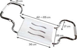 Profesionální sedátko do vany je ideální pomůckou pro seniory, osoby s omezenou pohyblivostí i pro rekonvalescenci. Robustní kovový rám z pochromované oceli a odolná plastová sedací plocha (cca 36 × 26 cm) zaručují stabilitu a dlouhou životnost. Sedadlo se jednoduše nasadí přes okraje vany a díky regulovatelným ramenům 42,5–65 cm se přizpůsobí různým šířkám.