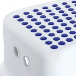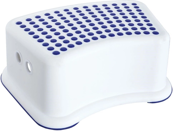Praktický a protiskluzový schůdek pro děti i dospělé usnadní každodenní dosah k umyvadlu, policím či do sprchy. Nabízí stabilní konstrukci, kompaktní rozměry 26 × 36 × 13 cm a nosnost až 80 kg. Vyrobeno z kvalitního plastu v bílé barvě s modrými prvky a protiskluzovou gumou na horní ploše i spodních hranách.