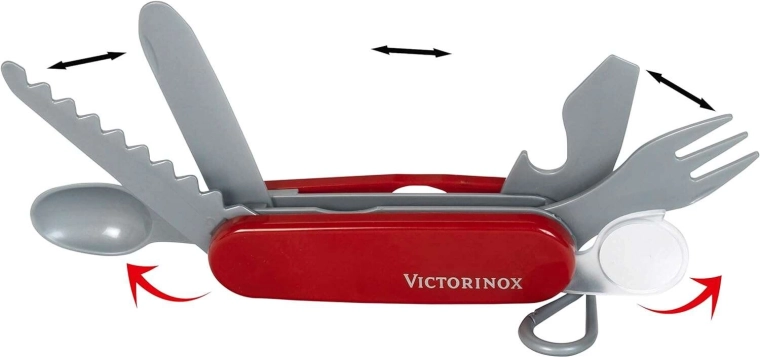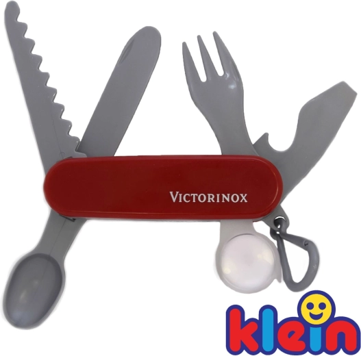 Dětský kapesní nůž VICTORINOX od KLEIN je věrná, ale zcela bezpečná napodobenina legendárního švýcarského nože. Díky preciznímu zpracování, červené rukojeti s logem a praktickému karabineru si jej mohou malí dobrodruzi připnout třeba k opasku a mít jej vždy po ruce.