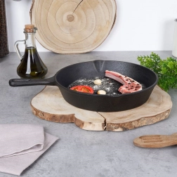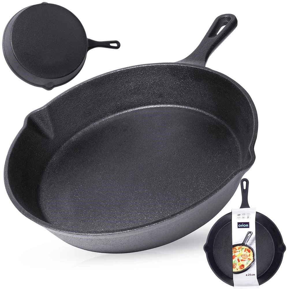 Robustní litinová pánev o průměru 25 cm je ideální pro přípravu masa, zeleniny, brambor i pečiva. Masivní tělo z litiny se rychle a rovnoměrně rozehřívá a udržuje stabilní teplotu, takže pokrmy zůstávají déle teplé a mají perfektní výsledky při searování, smažení i pečení.