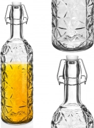 Stylová skleněná láhev o objemu 750 ml s patentním uzávěrem a silikonovým těsněním pro bezpečné a vzduchotěsné uchování nápojů. Díky kvalitnímu silnému sklu a dekorativnímu reliéfu se skvěle hodí na domácí limonádu, víno, likéry či sirupy. Opakovaně použitelná, praktická a zároveň dekorativní karafa do každé kuchyně.