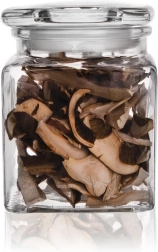 Skleněné víčko s těsněním spolehlivě chrání obsah před vlhkostí a pachy, takže potraviny zůstávají déle čerstvé a voňavé.