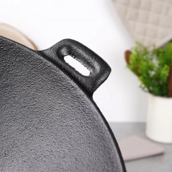 Silnostěnné litinové tělo výborně akumuluje a rovnoměrně rozvádí teplo – ideální pro prudké smažení a křupavý výsledek.