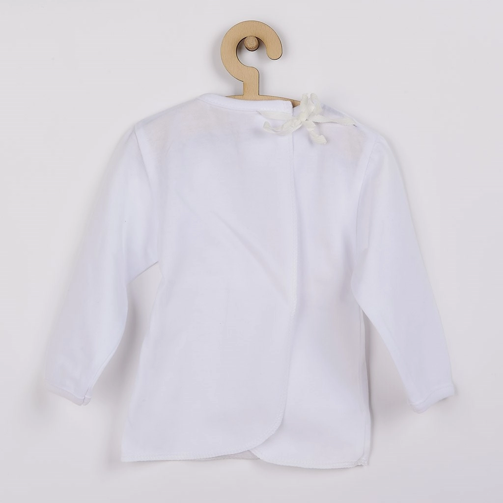 Praktické zavazování vzadu na tkaničky umožní rychlé a šetrné oblékání bez tlačení knoflíků nebo zipů na bříšku. Košilka je skvělou volbou do výbavičky, na spaní i pod svetřík.