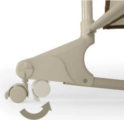 Robustní dvojitá otočná kolečka umožní hladký pohyb po bytě. Zabudovaná aretace zajistí stabilitu při spánku miminka.