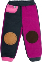 Praktické a hřejivé dětské fleecové kalhoty s koženými nákoleníky pro extra odolnost při hrách na kolenou. Mají hlubokou kapsu, elnastický pas s vnitřní regulací a široké lemy pro pohodlné nošení. Originální šachovnicové barevné provedení a nákoleníky v odlišných barvách na každém koleni dělají z každého kusu jedinečný kousek.