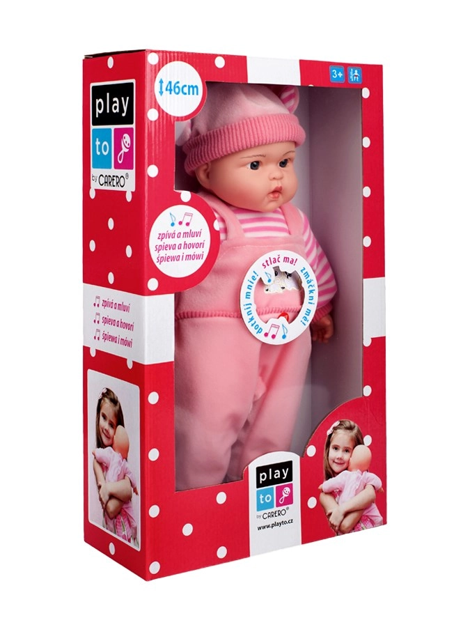 Roztomilá panenka PlayTo Agatka potěší každou holčičku. Má měkké tělíčko pro mazlení a realistické detaily obličeje. Díky polskému modulu mluví polsky a zpívá oblíbené písničky, což rozvíjí slovní zásobu a fantazii. Kompletní sada oblečků včetně botiček a čepičky je snímatelná a pratelná. Délka panenky je 46 cm.