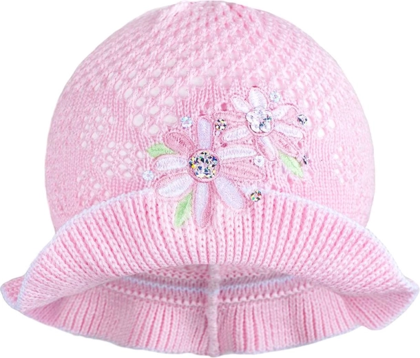 Lehký a pohodlný pletený klobouček NEW BABY je ideální na jaro a teplejší dny. Díky 100% bavlně je šetrný k citlivé dětské pokožce, dobře dýchá a zároveň chrání před sluncem. Jemný růžovo‑bílý design s květinkami dodá každému outfitu roztomilý vzhled.
