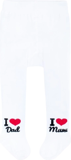 Roztomilé bílé punčocháče pro děti od značky New Baby s veselým motivem I Love Mum & Dad. Jsou z kvalitní bavlny, příjemné na pokožce, drží tvar a nepouští barvu. Ideální na každý den pro velikost 80–86.