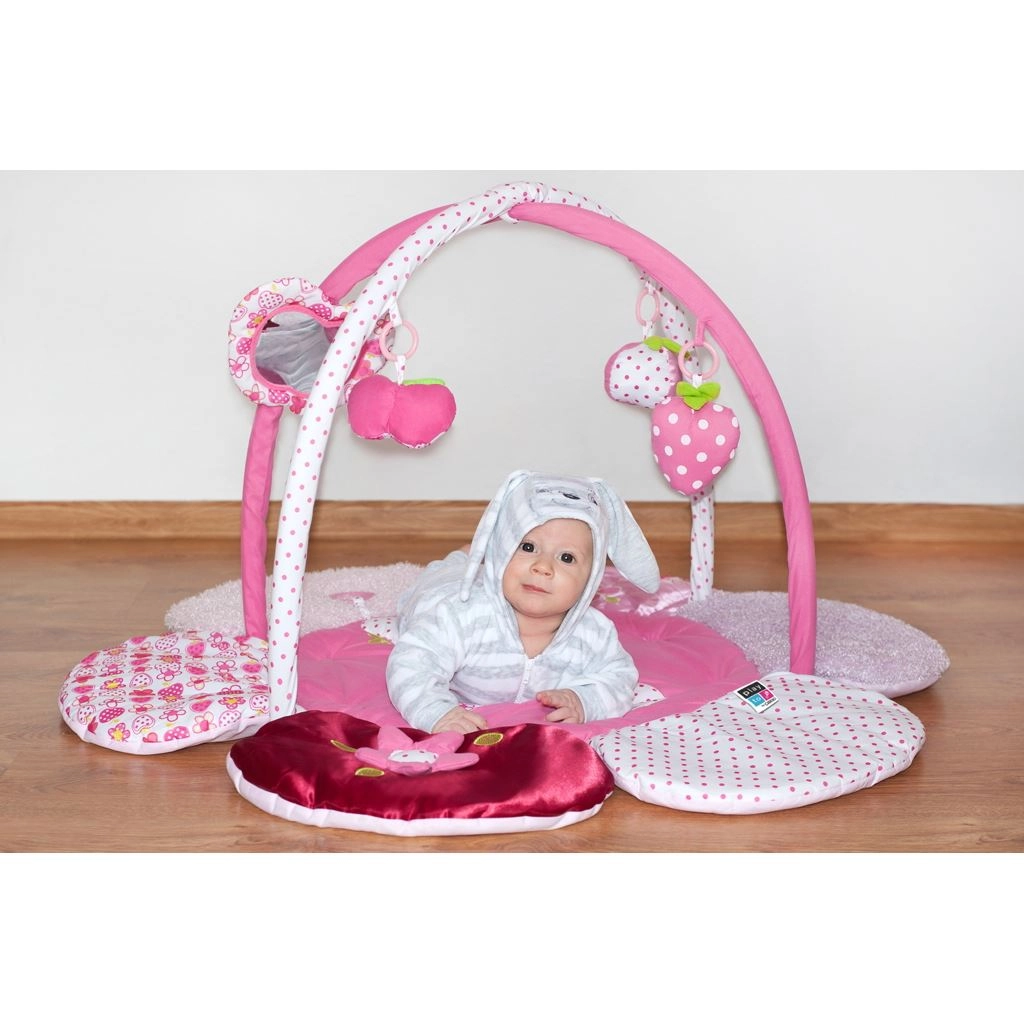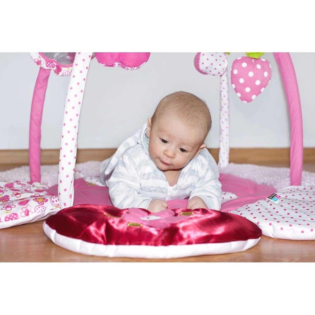Deka láká k prozkoumávání různými texturami a šustícími prvky, které stimulují hmat, zrak i sluch. Hračky z hrazdičky lze jednoduše odepnout a vzít s sebou do kočárku nebo postýlky. Díky průměru cca 100 cm poskytuje dostatek prostoru pro bezpečný pohyb a cvičení.