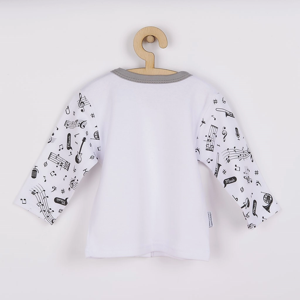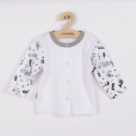 Kabátek NEW BABY Music je ideální volbou pro každodenní nošení. Jemná, prodyšná 100% bavlna zajišťuje komfort, zatímco hravý hudební motiv přidává styl a radost do každého dne.