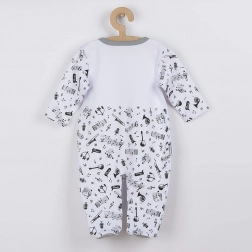 Kojenecký overal New Baby Music kombinuje něžný vzhled s praktickými detaily pro každodenní použití. Celoplošný potisk not a hudebních nástrojů spolu s roztomilým motivem na hrudi dodává oblečku originální styl. Díky kvalitní bavlně je overal prodyšný, měkký a šetrný k citlivé pokožce.