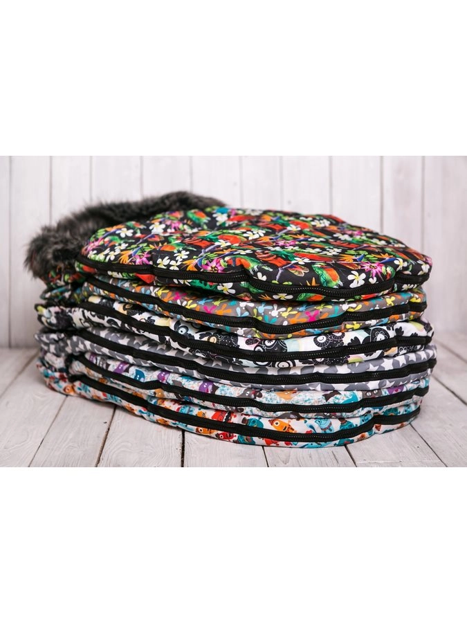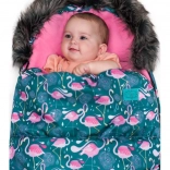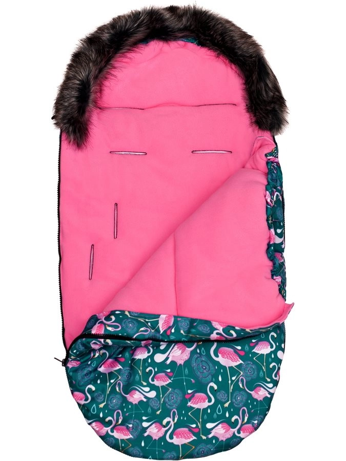 Praktické provedení se zipem po celém obvodu umožňuje rychlé uložení i vyndání dítěte a snadné větrání. Otvory pro 5bodové bezpečnostní pásy zajišťují kompatibilitu s kočárky a autosedačkami, zadní kapsa pak pomáhá fusak pevně zafixovat na kočárku nebo sáňkách. Univerzální rozměry cca 98 × 53 cm padnou většině sportovních i hlubokých kočárků.