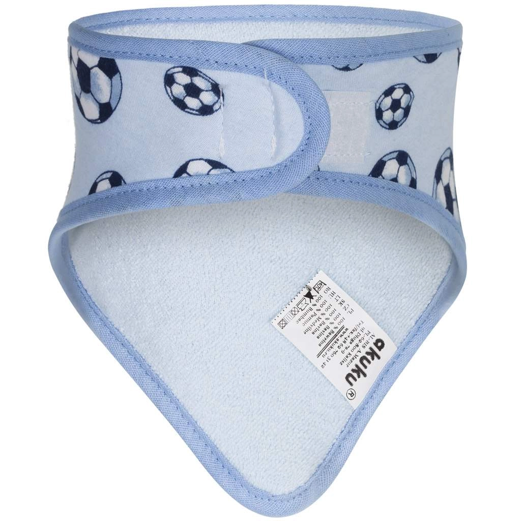 Sada 2 ks bryndáčků–šátků AKUKU chrání citlivou dětskou pleť i oblečení před vlhkostí a ušpiněním. Jedna vrstva z jemné froté bavlny spolehlivě saje, druhá z hladké bavlny je příjemná na dotek. Praktický trojúhelníkový tvar a zapínání na suchý zip usnadní rychlé nasazení i sejmutí.