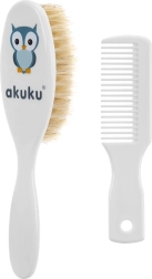 Kartáček a hřebínek s přírodním vlasem AUKUKU sova – bílý