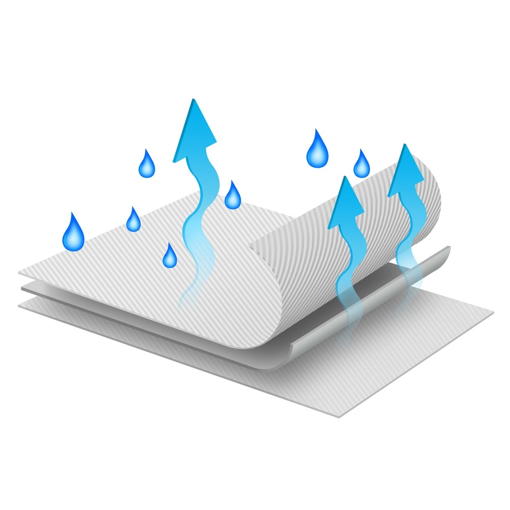 Více vrstev s prodyšnou strukturou pomáhá odvádět vlhkost a udržovat povrch suchý a pohodlný při používání.