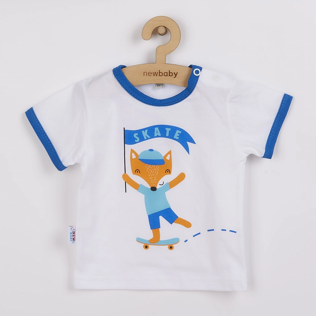 Tato stylová soupravička pro miminka je navržena s maximálním důrazem na pohodlí a jemnost. Tričko s krátkým rukávem má kontrastní lemování kolem krčku a rukávů a zaujme veselým potiskem lišky s nápisem SKATE. Zapínání na ramínku usnadňuje oblékání i svlékání, což rodiče ocení při každodenní péči.