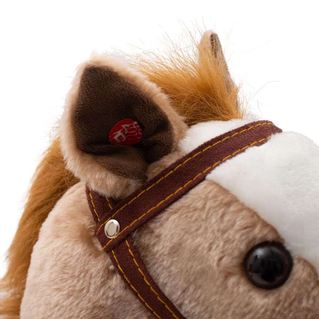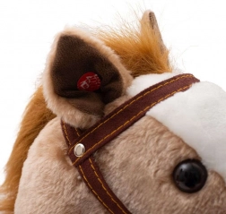 - Interaktivní zážitek: po stisknutí oušek koník řehtá, vydává zvuky klusu a hýbe tlamičkou.