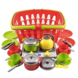Obsahuje různé kuchyňské nástroje a nádobí v červených, zelených a žlutých barvách, které rozvíjí dětskou kreativitu.