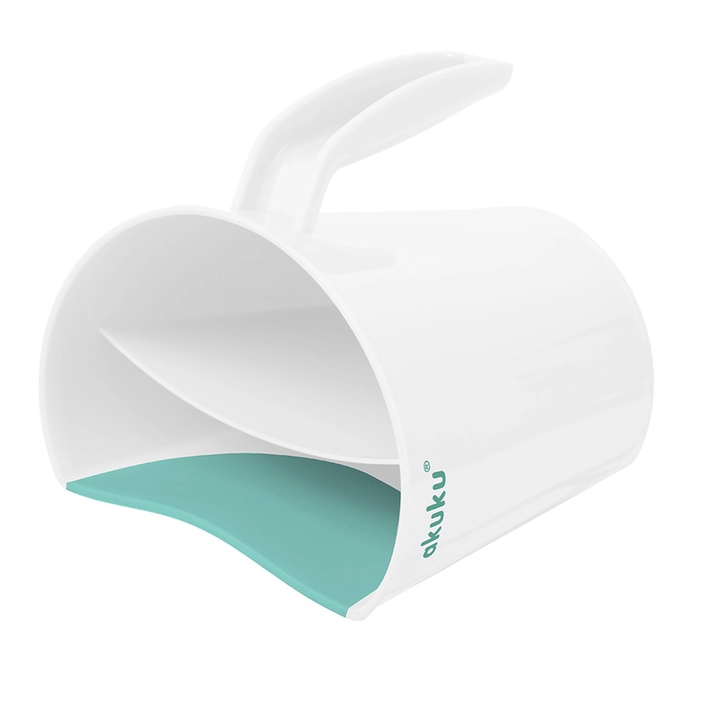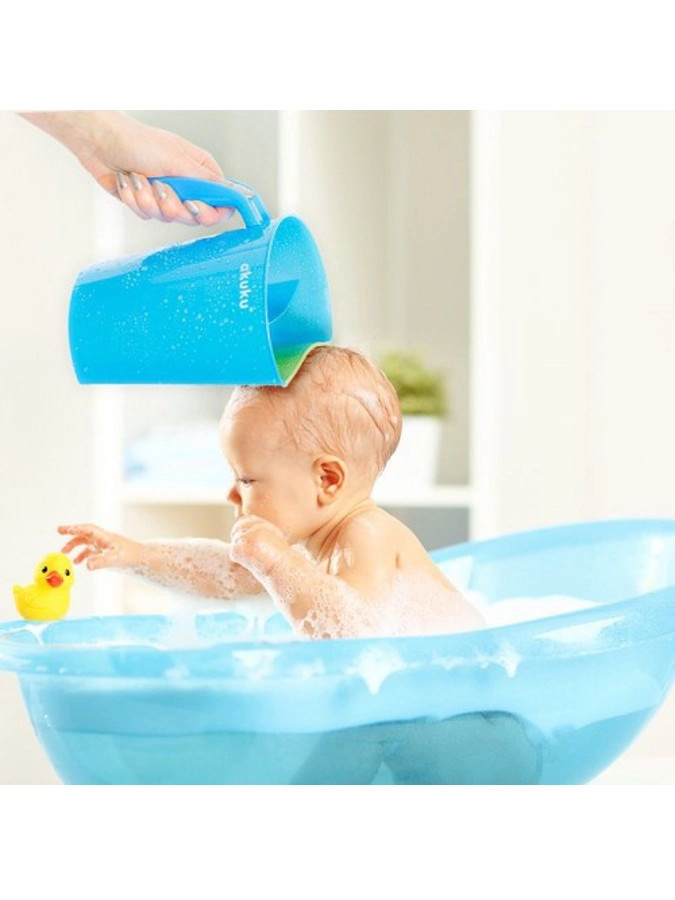Nádobka AKUKU v bílo‑mátovém provedení je chytrý pomocník pro každodenní koupání miminek i větších dětí. Měkký, přizpůsobivý lem se jemně přitiskne k čelu a směruje proud vody tak, aby se nedostal do očí. Dvě oddělené komory umožňují kontrolované nalévání a rovnoměrné oplachování šamponu i pěny.
