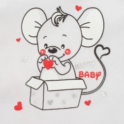 Dupačky New Baby Mouse jsou ideální volbou pro každodenní nošení i klidný spánek. Příjemná čistá bavlna je šetrná k citlivé pokožce miminka a poskytuje celodenní pohodlí. Praktické cvočky usnadňují přebalování i oblékání, zatímco barevné lemování a velký obrázek myšky dodávají oblečku hravý vzhled.